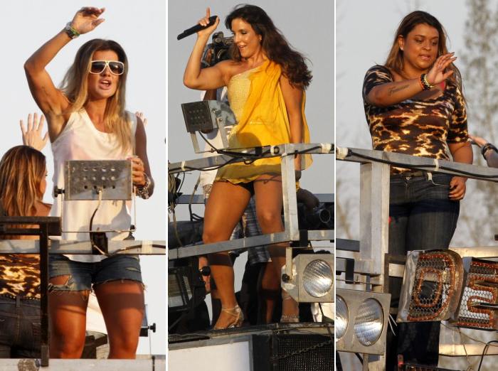 Sob o sol forte carioca, a cantora baiana se apresentou para uma multidão da qual fizeram parte duas famosas: a modelo Mirella Santos e a cantora Preta Gil.